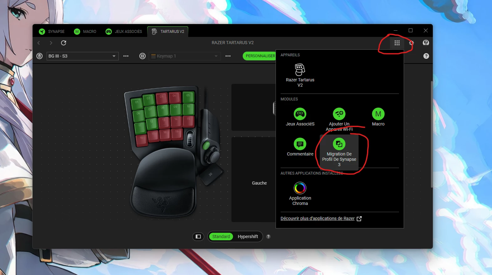 I just updated to Synapse 4 as I was prompted to do. I felt sate doing it as it said all settings/customizations would be transferred over. They were not. How do I get my previous customizations back for my Tartarus? I had a LOT going on for 2 different games.
