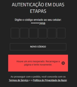 I can't make my purchase because it says an SMS will arrive, but it never arrives, and when I click send again an error appears saying "There was an unexpected error. Please reload the page and try again."