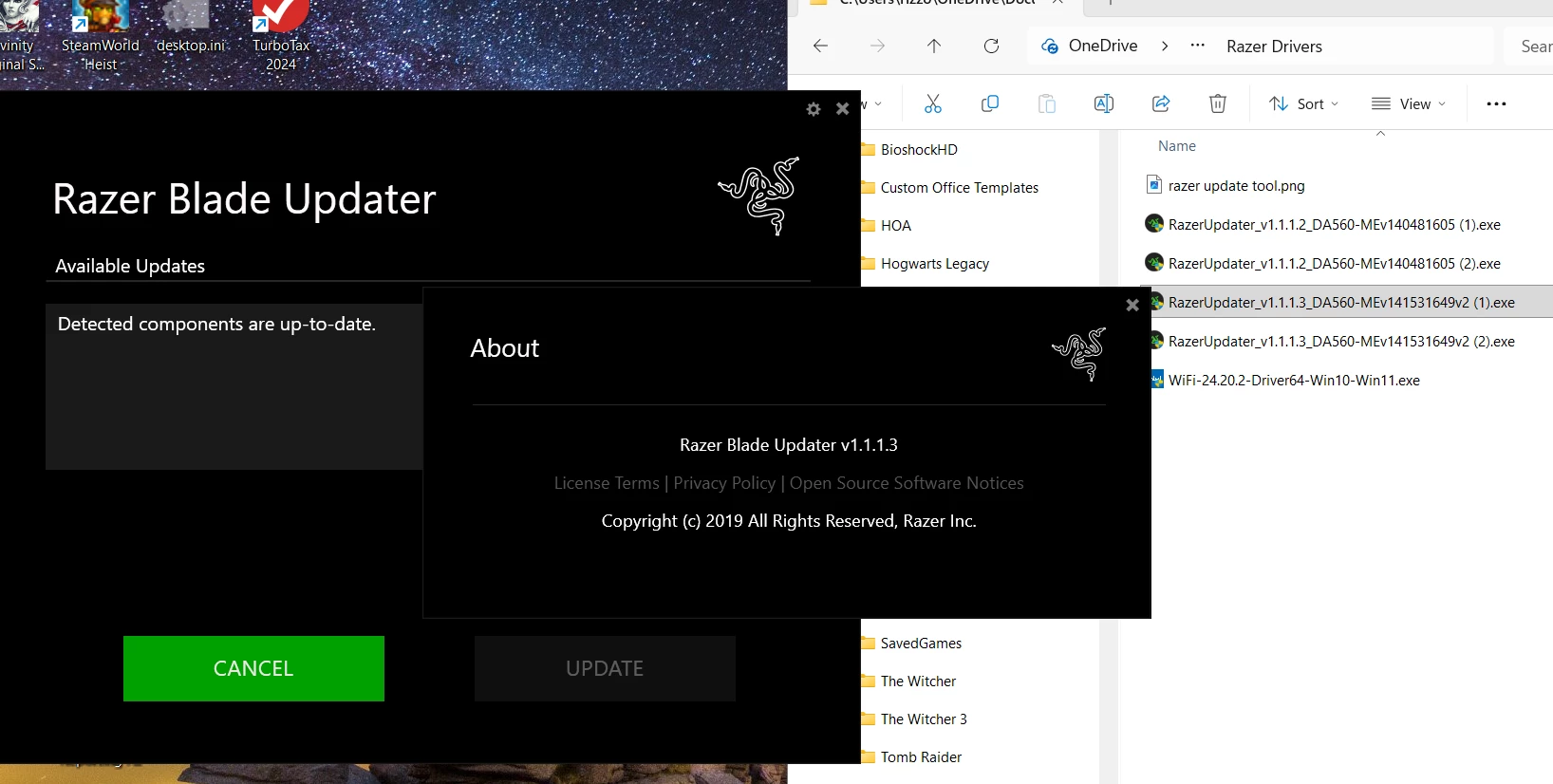 Do I need to step through each BIOS Update from 1.0.0 ? There are only 2 updates (1.1.2 and 1.1.3) available from Razer Support pages. When I run either as an admin user, they both give the same message “Detected Components are up-to-date”