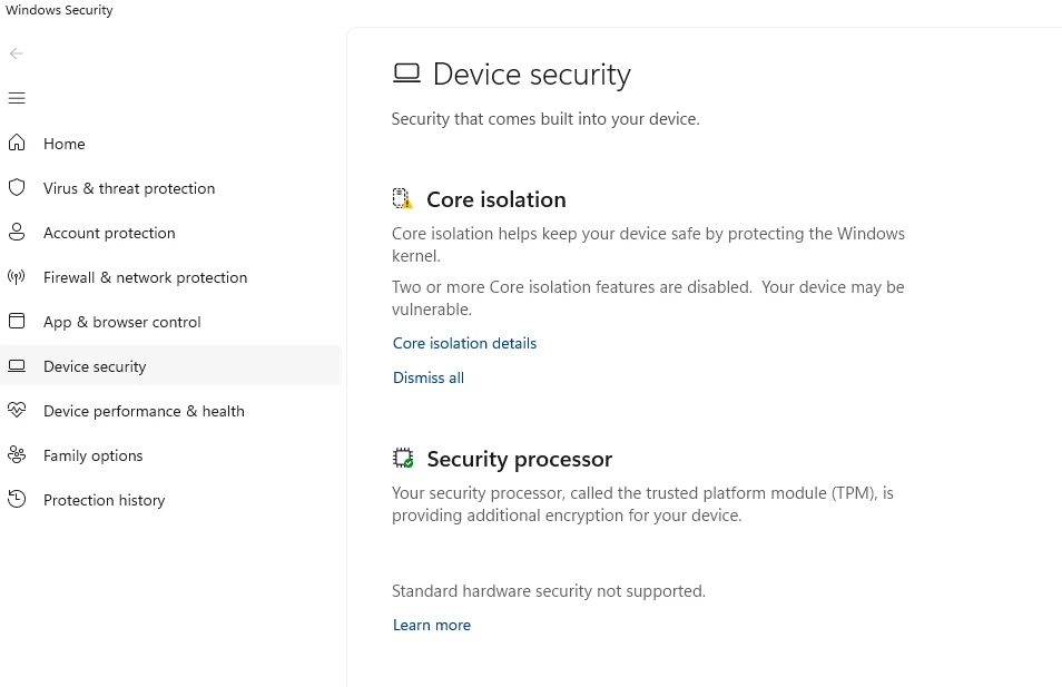 I disabled secure boots and turned off Windows 11 Core Isolation -