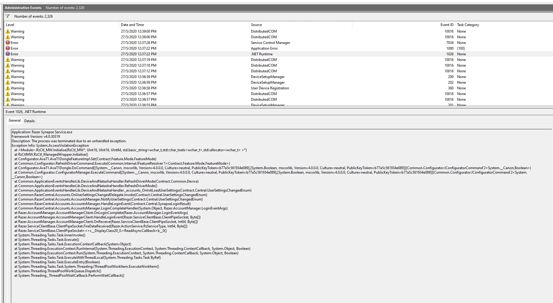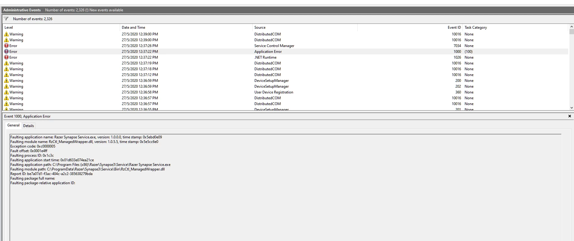 was playing overwatch, then black screen unexpectedly. checked the eventviewer and it stated it is synapse 3 causing the error. Please help to fix?