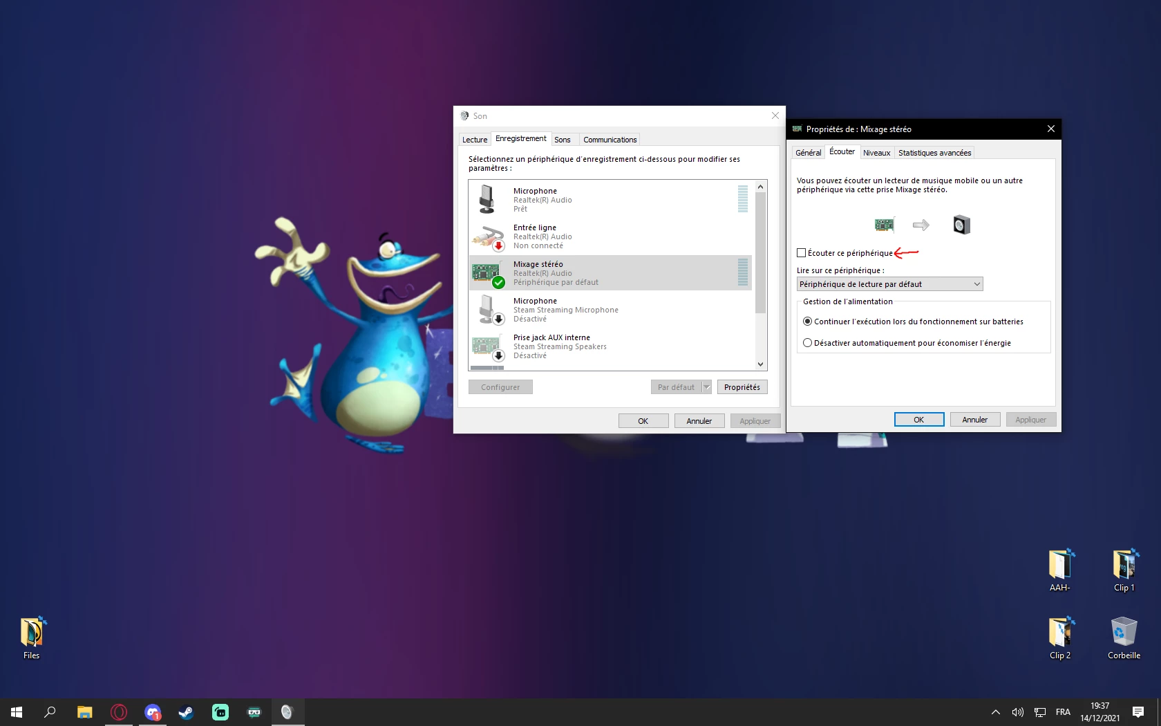 So basically, I just bought the Razer Kraken X. I plugged it in my PC with the audio splitter, but even though the mic works, I hear myself in the headset (the "Listen to this device" check box isn't checked, as shown on the screenshot attached, despite it being in french. Sorry about that.), and even though the headset's sound works, it goes through the microphone as well. It's not like an echo or anything, it's basically broadcasting my mic's sound through both the headset and the mic, and my headset's sound through both the mic and the headset. I hope it's not anything like a misconception and it's actually just an easily fixable bug (or just a fixable bug for that matter), but I don't get why it does that. I'm currently installing the Surround 7.1 software to see if there are any options in there that can do the trick, but in the meantime any help is appreciated. Thanks in advance.