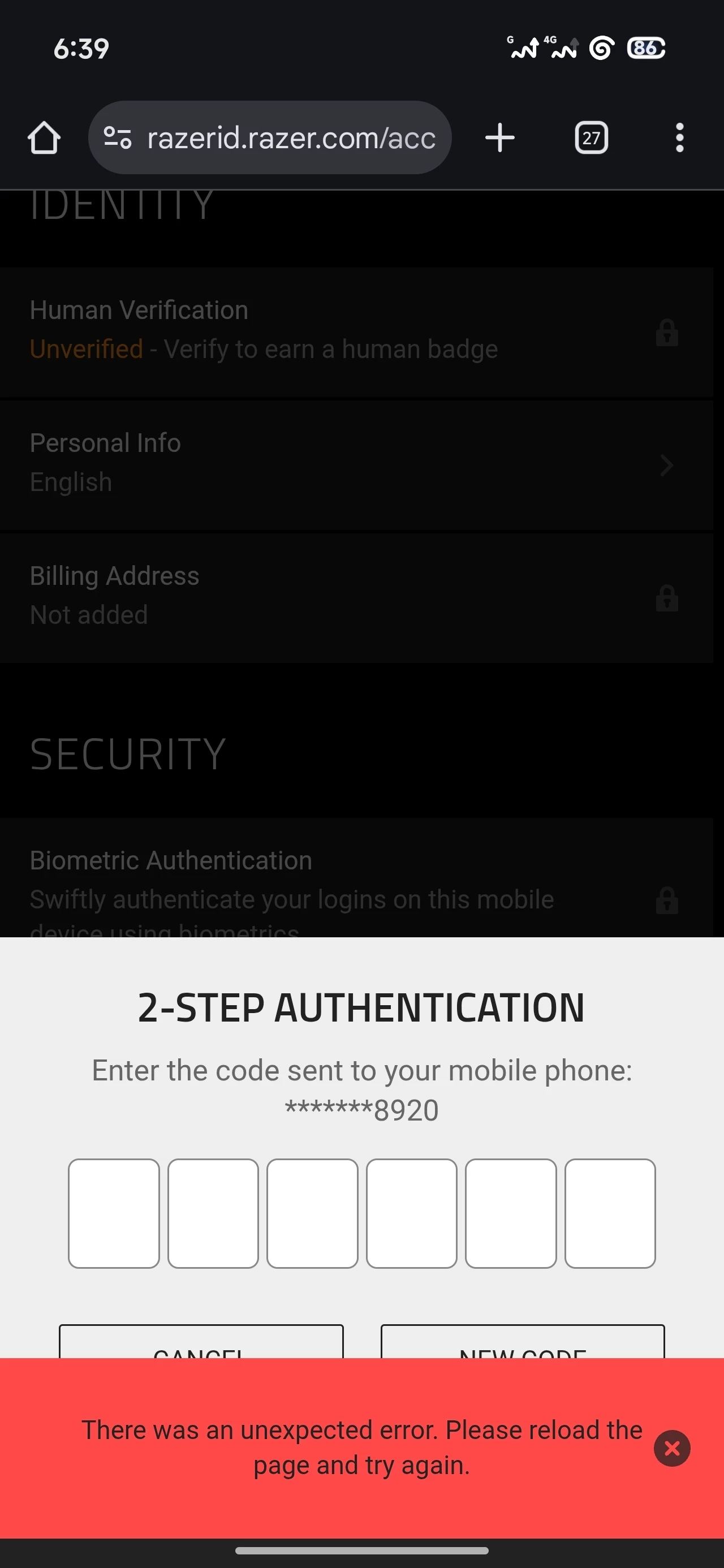 I understand you’re having issue with your Razer account OTP. Please follow the steps provided below and try again after 15 minutes: