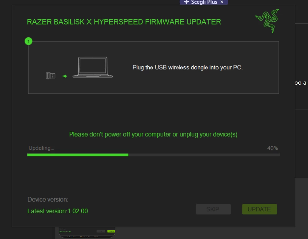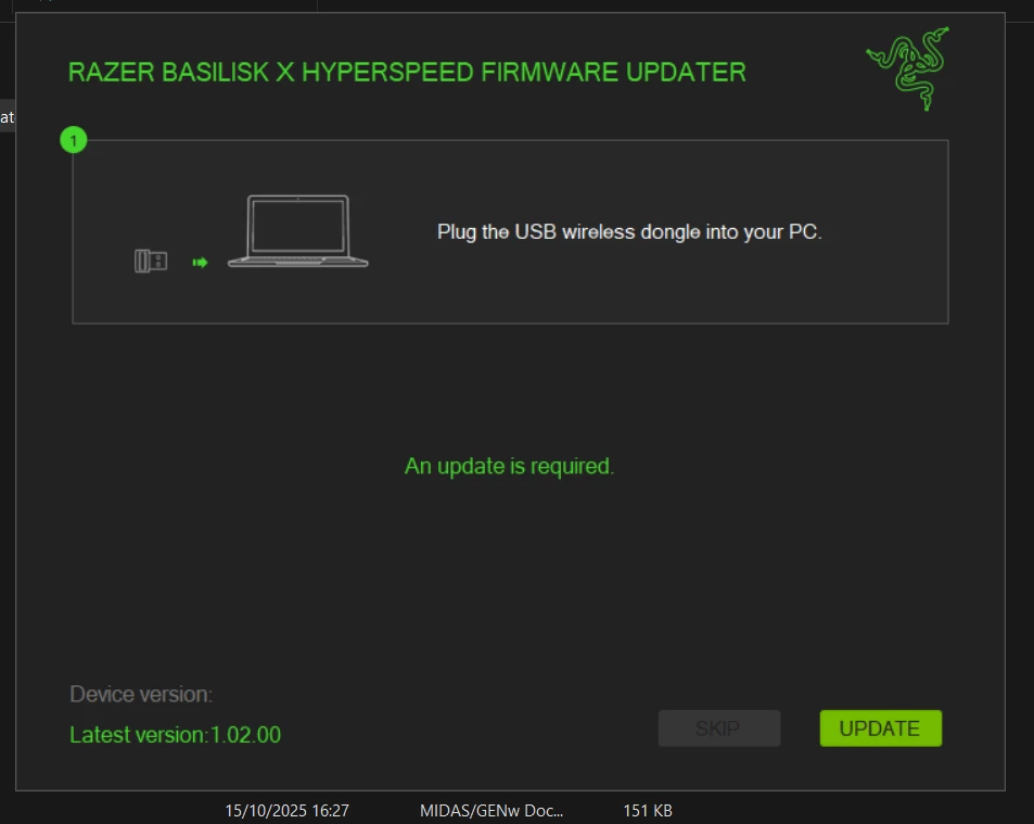 I have a Basilisk X Hyperspeed mouse from 2021, and it has always worked perfectly. However, in the last few days it stopped working. I tried updating the firmware as suggested by following the tutorial and downloading the updater, but after starting it, it gets to the loading screen at 40% and then restarts, telling me again that an update needs to be done.
