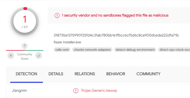 So I scanned the RazerSynapseInstaller.exe file and virustotal has flagged it as a trojan, wanted to ask about it as well as let others know about it.