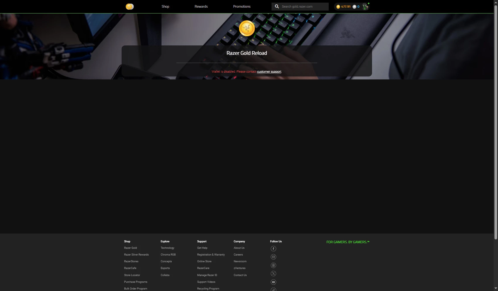 My Razer Gold account currently has a balance of Razer Gold 477.91, but my wallet has been disabled. I am unable to make any transactions or access my funds. Could someone from the support team please help me resolve this issue as soon as possible?