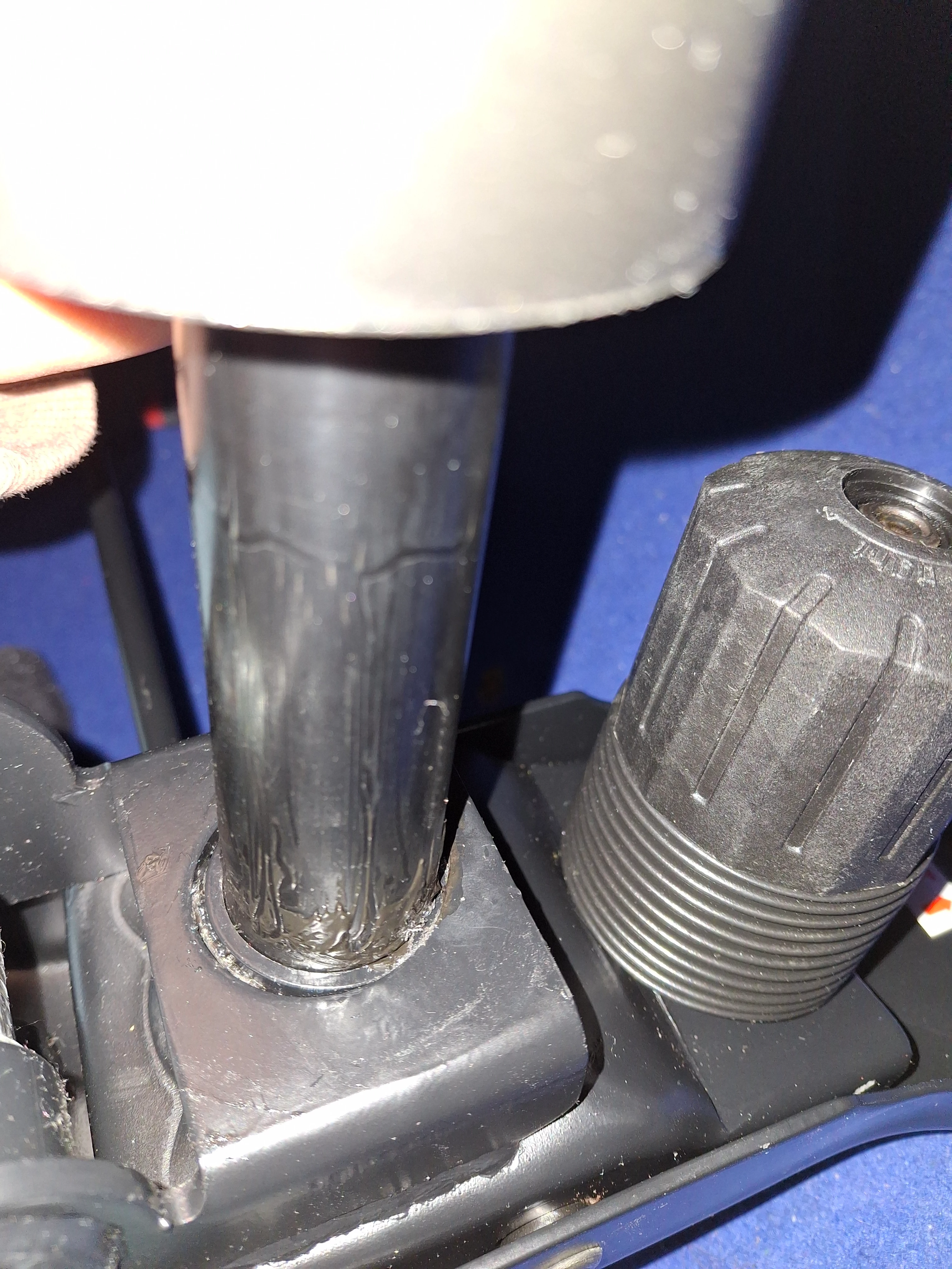 My Iskur chair which I've had about 2 years had suddenly become really wobbly. I think a part of the cylinder is broken - but it's the part isn't connected to the wheels but to the bottom of the chair. It's all gone off to one side.