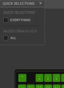 Hello. I have a Razer Ornata V3 X and tried to create a lightning effect using the Synapse 3 Studio but having problem with quick selection function. It automatically selects all the keys.