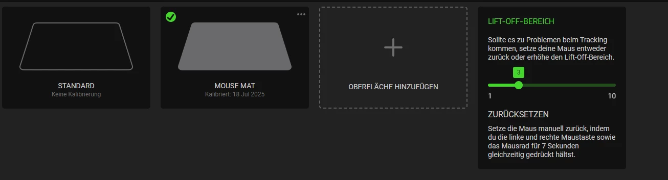 Now with Synapse 4, I calibrated the mouse pad, everything worked fine. Lift Off value is at 3.