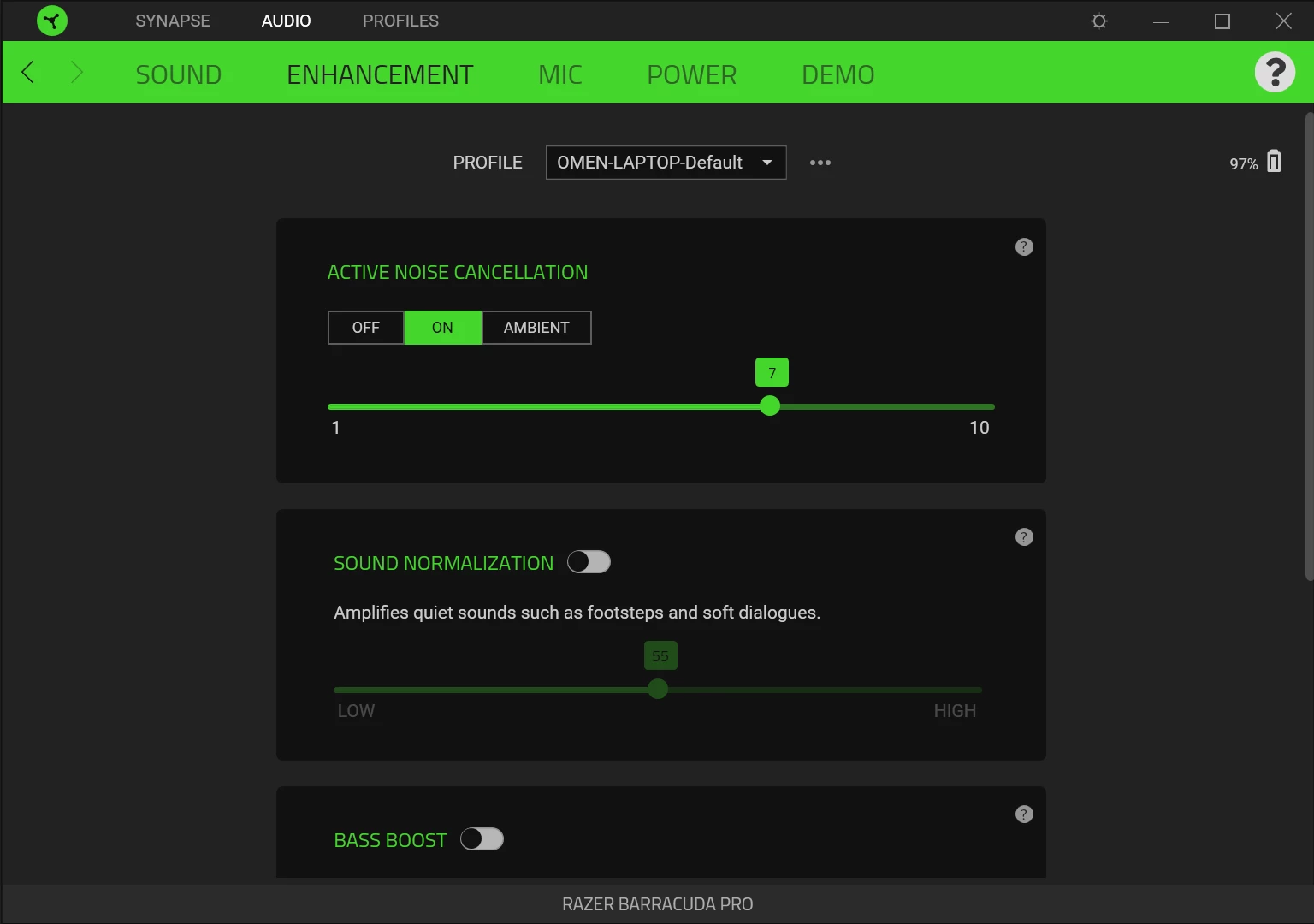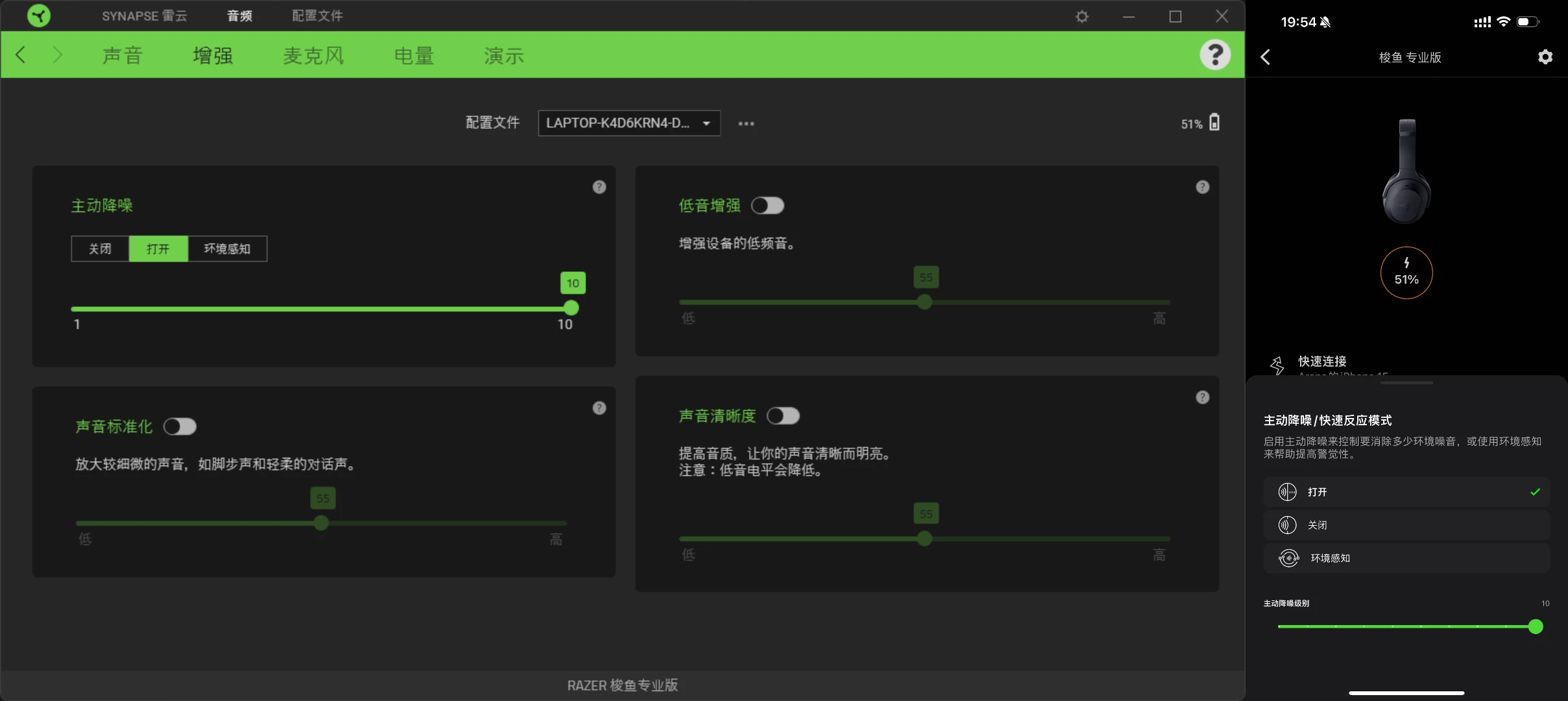 Now can switch ANC on/off or ambient, but cannot adjust ANC level in Synapse 4 version 4.0.86.2601160905 and beta version 4.0.86.2511170410.
