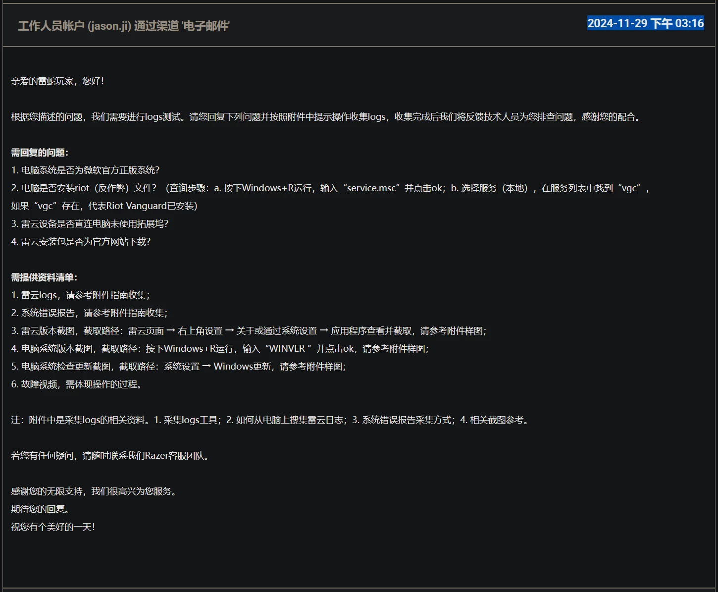 Since 02-Nov-2024, I reported this issue to Razer Support staff.