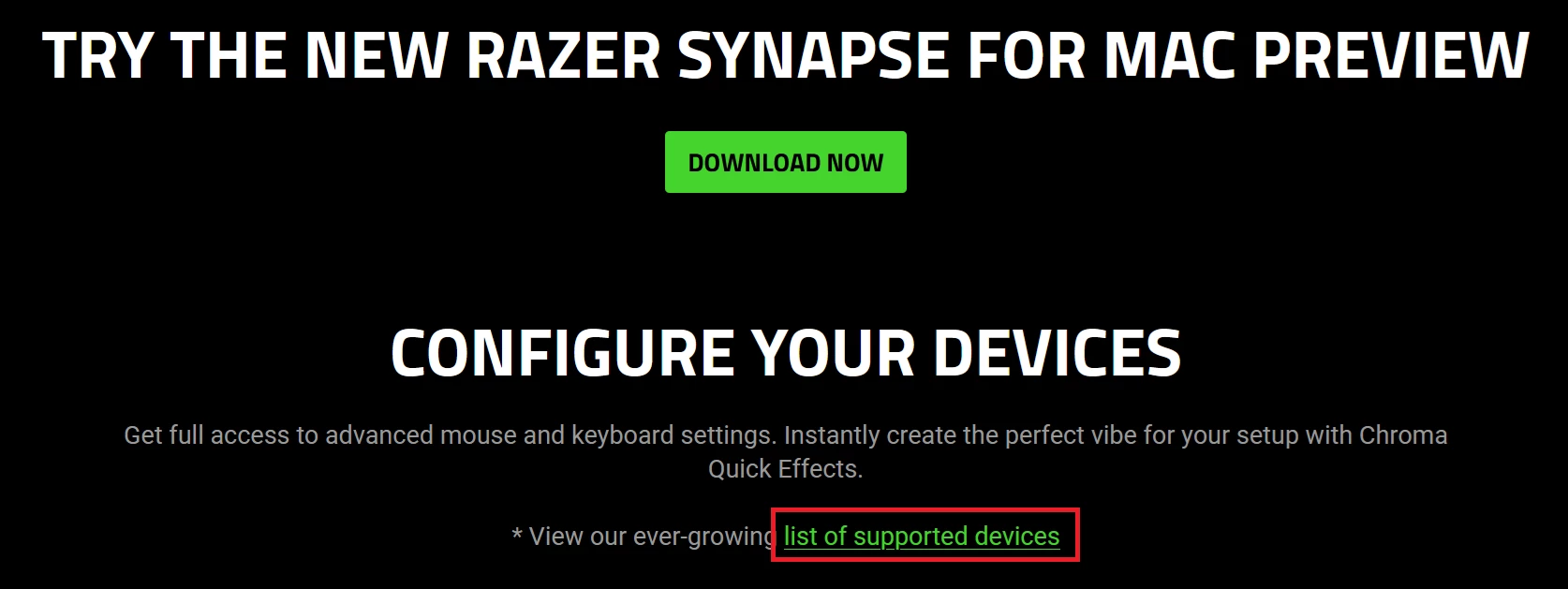 The full list of supported devices can always be seen on the link on this page : https://www.razer.com/synapse-4-mac