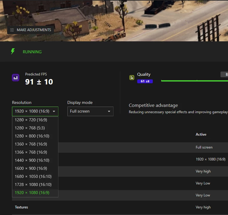 few day ago I start to cortex to boost FPS PUBG and it get well but when I try change resolution 1920*1080 my FPS drop lower than 10 and I can't change back to my monitor (1920*1200)