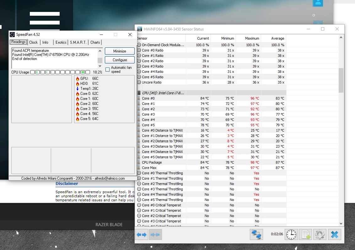 TimDoggInteresting thermals difference from those two softwares, I saw poeple mostly look at HWInfo 64, so check other thermal software like this to see the accuracy. https://www.techpowerup.com/realtemp/ First I would like to rise ticket and see what support said about this. Honestly BF4 hitting over 95 isn't good for future proof of the Blade, that's why I recommend extended warranty at least 2 years. Did you also undervolt it?